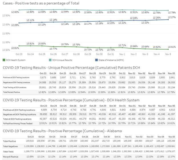 - 4,915 (cumulative) positive COVID-19 at DCH sites. These individuals are not necessarily in the hospital.