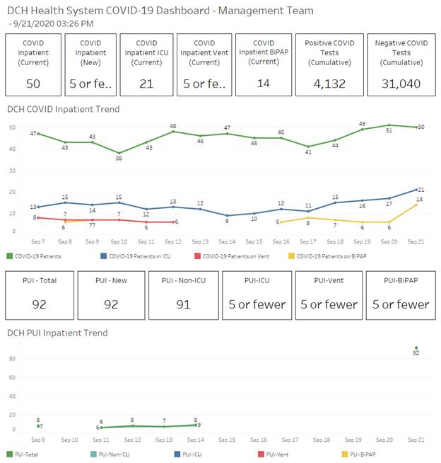 - 4,132 (cumulative) positive COVID-19 at DCH sites. These individuals are not necessarily in the hospital.