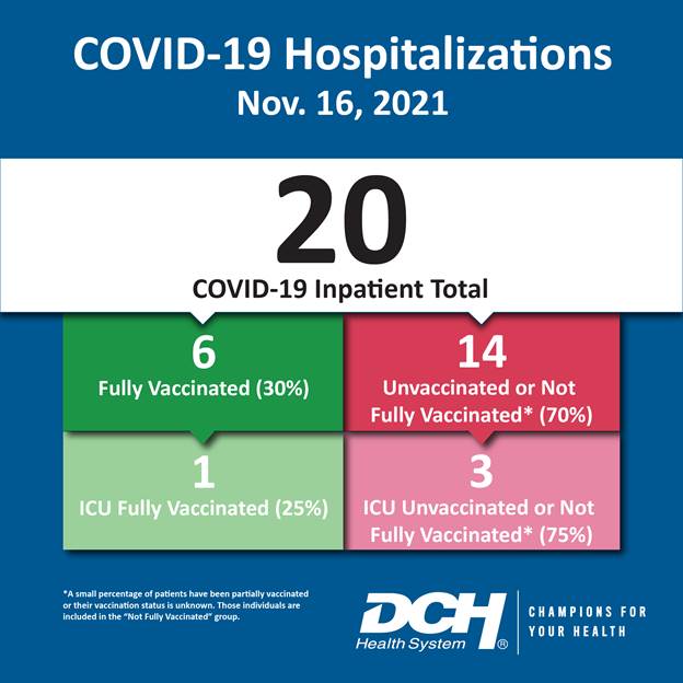 DCH Health System internal counts as of 4:30 p.m. on 11/16/21: