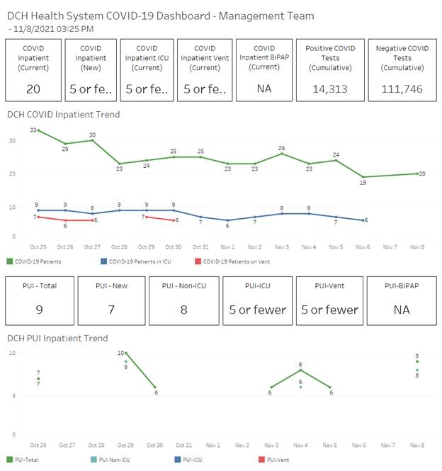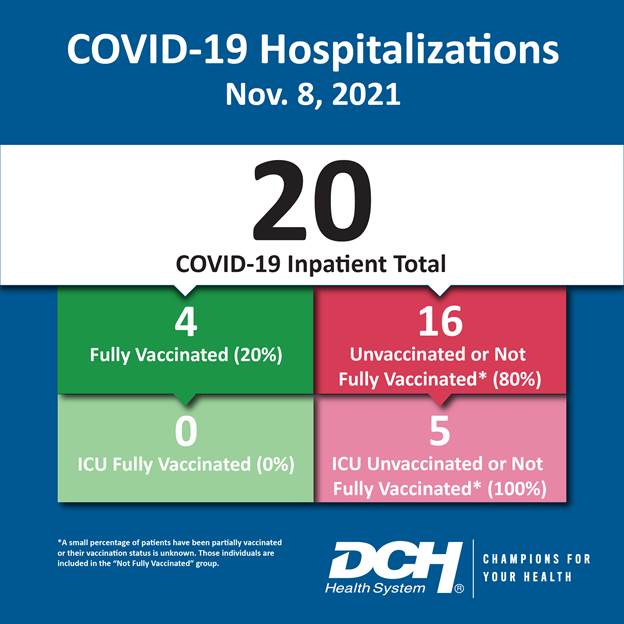 DCH Health System internal counts as of 3:24 p.m. on 11/8/21: