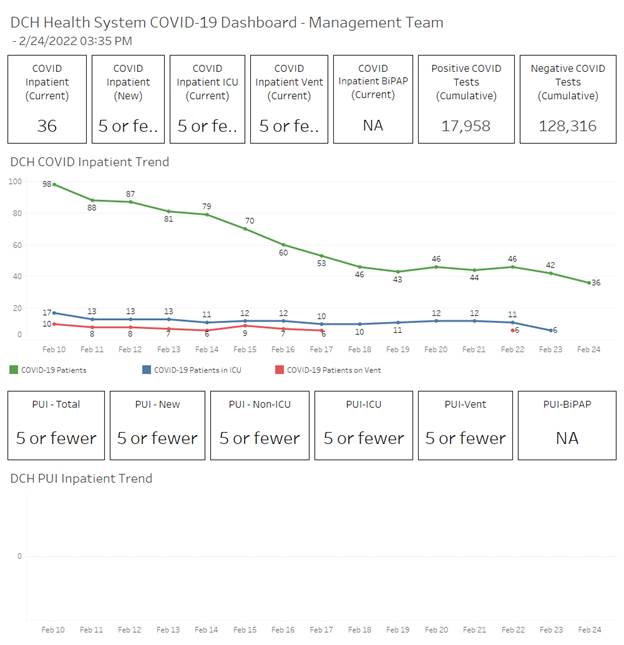 - 36 inpatients within the DCH system who are positive for COVID-19.