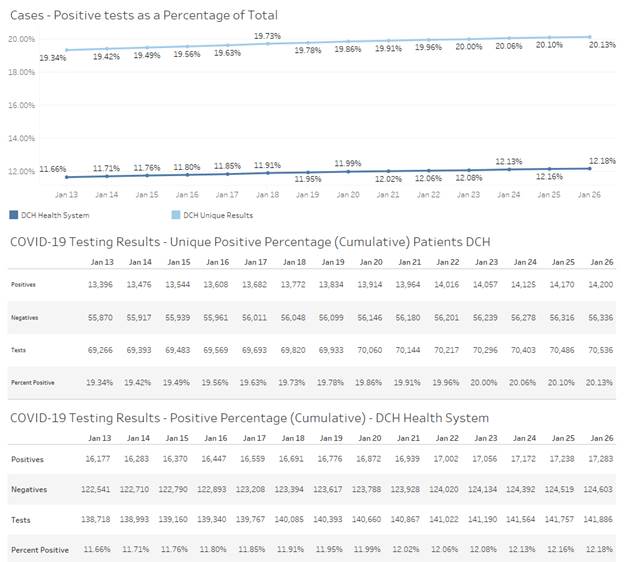 DCH Health System internal counts as of 4:08 p.m. on 1/26/22: