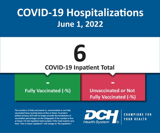 DCH Health System internal counts as of 3:57 p.m. on 6/1/22: