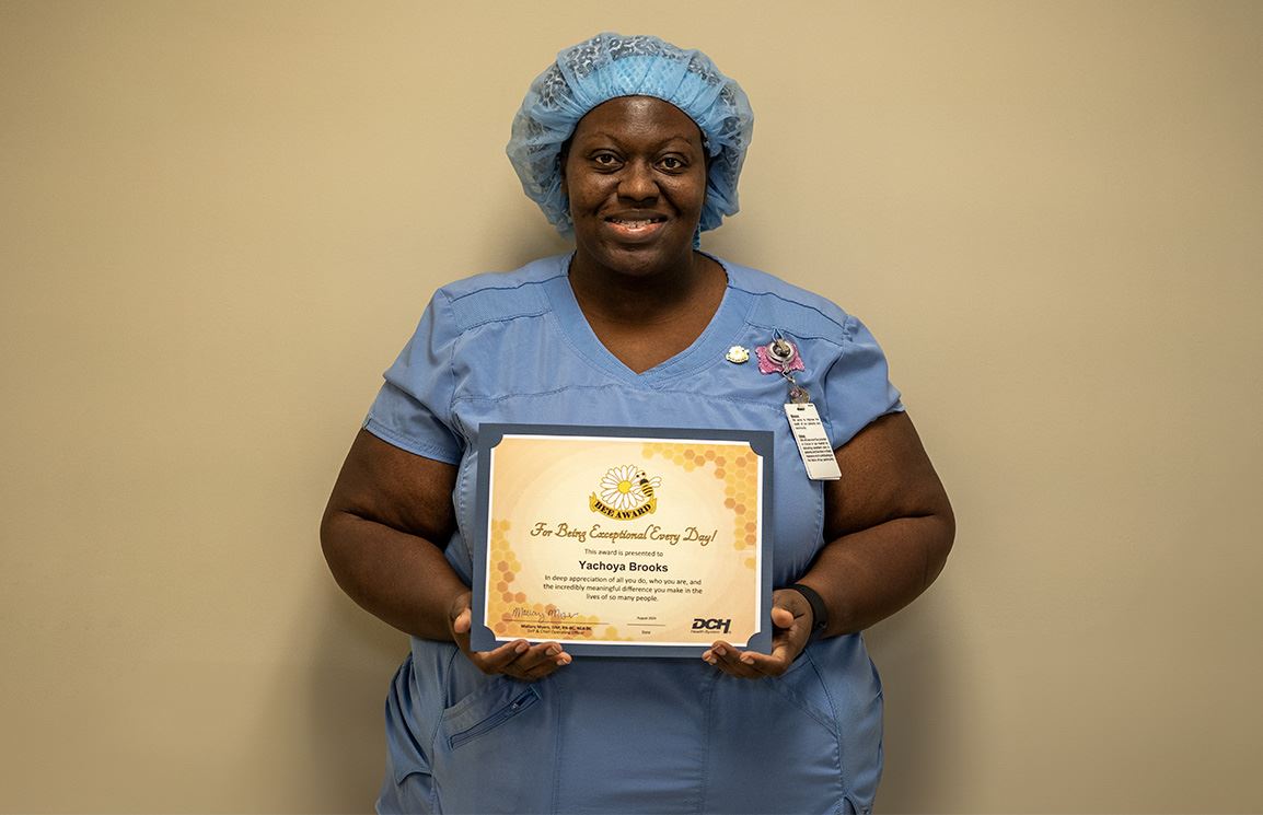 Congratulations to Yachoya Brooks, a sterile processing technician for Central Sterile Processing at Northport Medical Center. Brooks is one of our recent BEE Award winners.